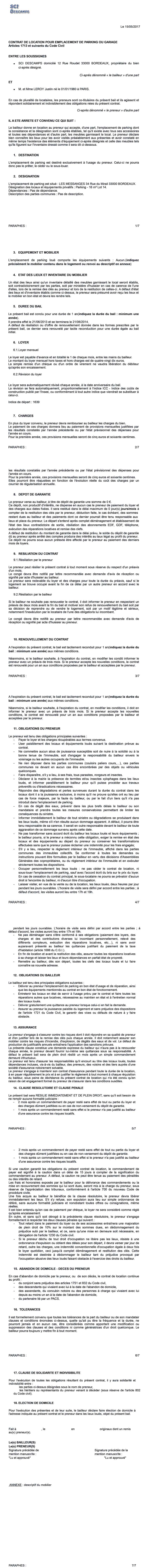 Voici l'exemple d'un contrat de location de parking ou de garage généré automatiquement par LocaGest au format Word ou PDF :